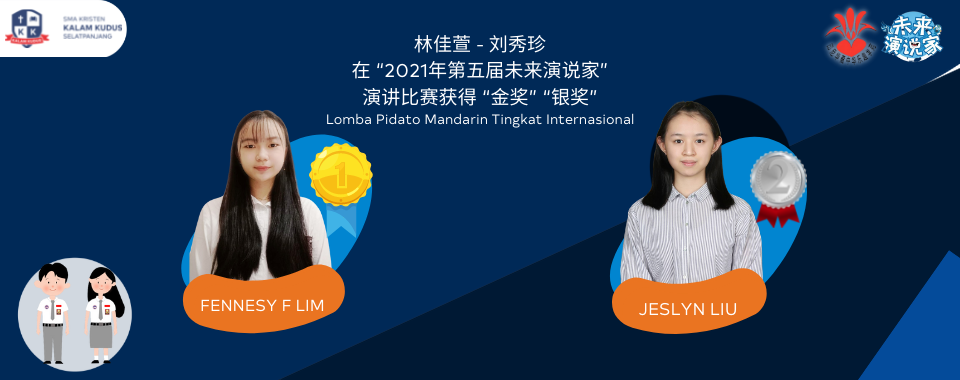 Siswi SMAK Kristen Kalam Kudus Selatpanjang kembali berprestasi pada Lomba Pidato Mandarin Tingkat Internasional untuk kedua kalinya setelah Eva Ceryana yang berhasil meraih peringkat 2. Kali ini prestasi ditorehkan oleh Fennesy Fiorent Lim (peringkat 1) dan Jeslyn Liu (peringkat 2) di kelas yang sama. Bangga atas prestasi Fennesy Fiorent Lim, Jeslyn Liu, dan Eva Ceryana yang berani menunjukkan kualitas bahasa mandarin kota Selatpanjang di ranah Internasional, ini membuktikan bahwa kualitas mandarin kota Selatpanjang memang tidak kalah dengan negara-negara yang fasih berbahasa mandarin. Sekolah Kristen Kalam Kudus Selatpanjang sejak dulu sudah menerapkan pelajaran bahasa Mandarin pada setiap tingkat sekolah mulai dari TK, SD, SMP dan SMA, mata pelajaran bahasa Mandarin menjadi salah satu nilai plus dibandingkan dengan sekolah lain. Kiranya prestasi yang diraih oleh Fennesy Fiorent Lim, Jeslyn Liu, dan Eva Ceryana bisa diikuti oleh siswa-siswi SKKK Selatpanjang yang lain.