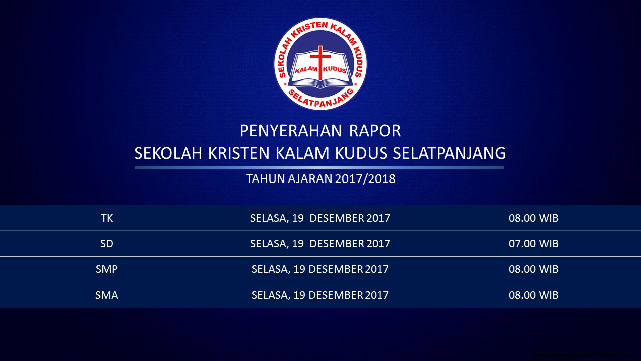Berdasarkan keputusan Presiden Republik Indonesia Nomor 3 Tahun 2017 tentang Hari Pemungutan Suara Pemilihan Gubernur dan Wakil Gubernur, Bupati dan Wakil Bupati, serta Walikota dan Wakil Walikota (Pilkada Serentak) Tahun 2017 sebagai hari LIBUR NASIONAL maka Sekolah Kristen Kalam Kudus Selatpanjang tidak mengadakan proses KBM pada tanggal 15 Februari 2017. Proses KBM akan dimulai pada tanggal 16 Februari 2017.